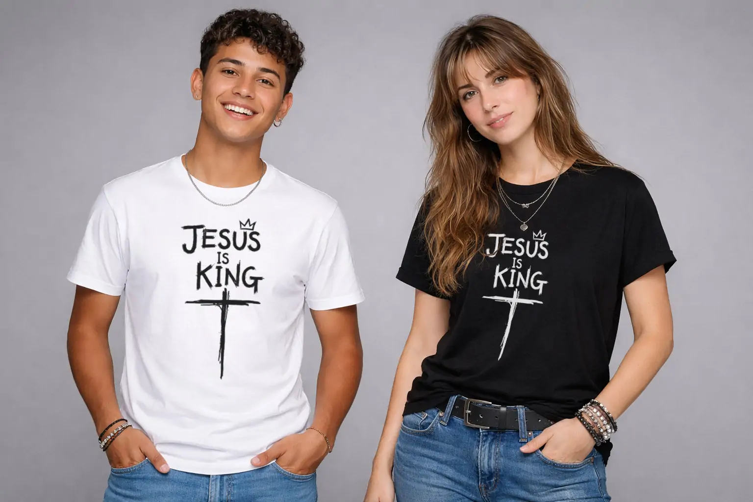 👑 Pacote com 4 Artes Digitais para Camiseta: "Jesus Is King" ✨