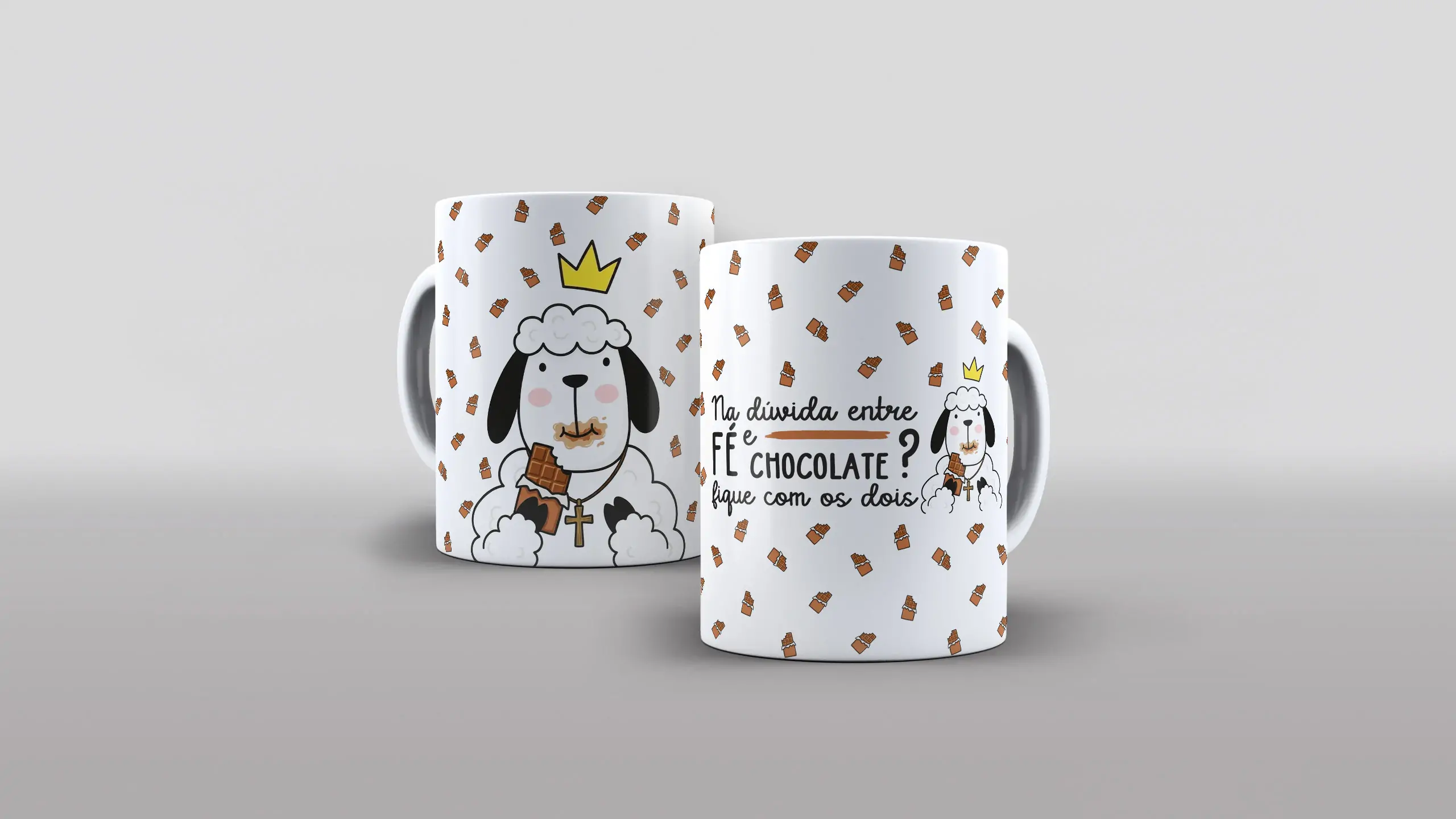 Encante seus clientes com arte que une humor, fé e aquela vontade de comer chocolate — tudo em uma estampa que vende sozinha! 🐑🍫✝️☕🔥