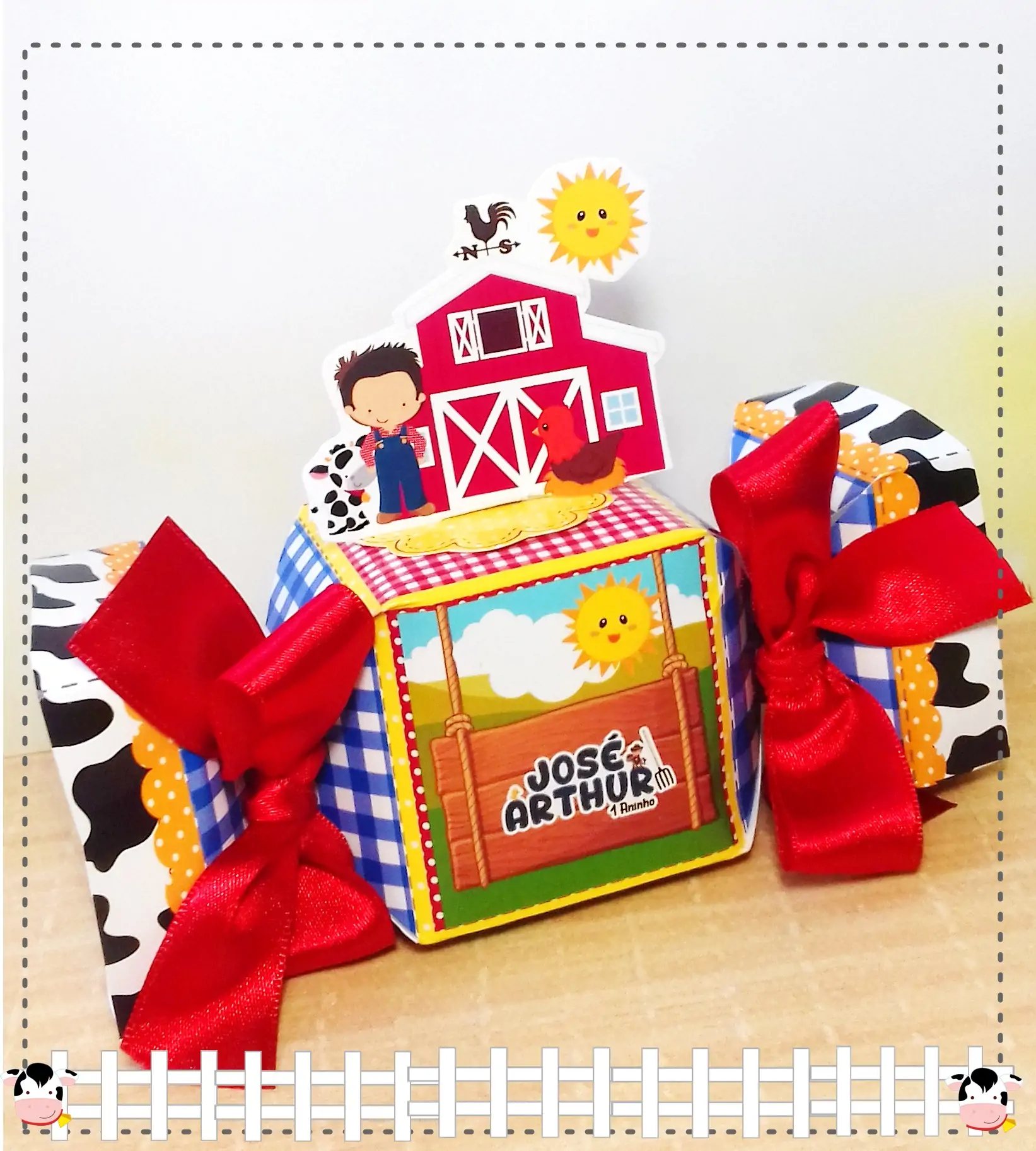 Fazendinha menino topper sacola piramide centro de mesa convite Caixa maletinha