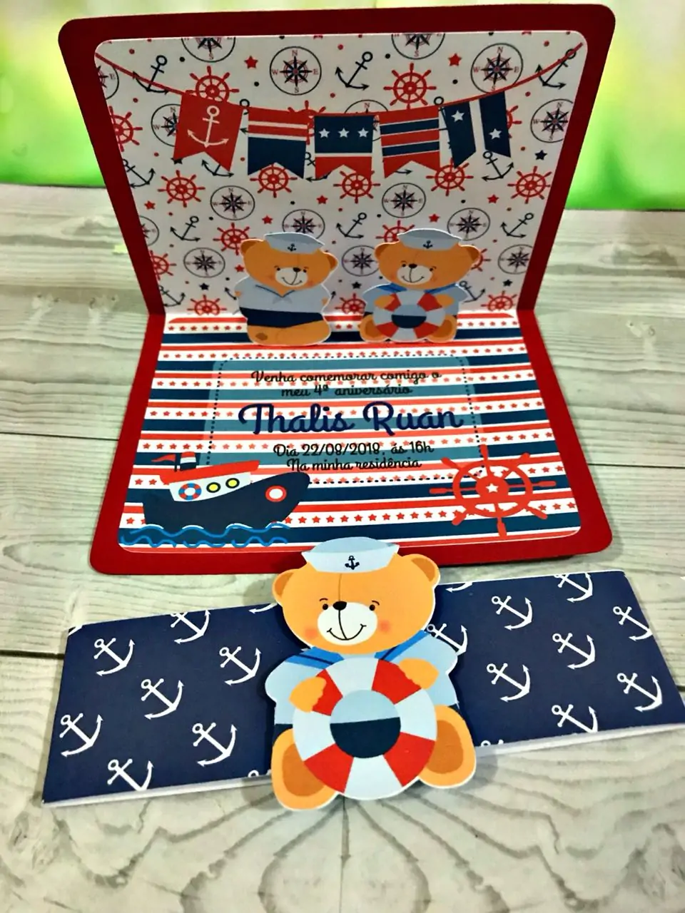 Kit Caixa Convite Porta cofrinho maleta revistinha ursinho marinheiro